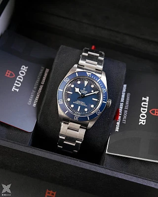 Корпус из нержавеющей стали 316L диаметром 41 мм с полированной и сатинированной отделкой. Мануфактурный Калибр MT5813 с функцией хронографа. Запас хода около 70 часов. Фиксированный безель из нержавеющей стали 316L, с синим диском из анодированного алюминия с тахиметрической шкалой и серебристыми отметками. Браслет из пяти звеньев из нержавеющей стали 316L с полированной и сатинированной отделкой и застежкой TUDOR T‑fit.